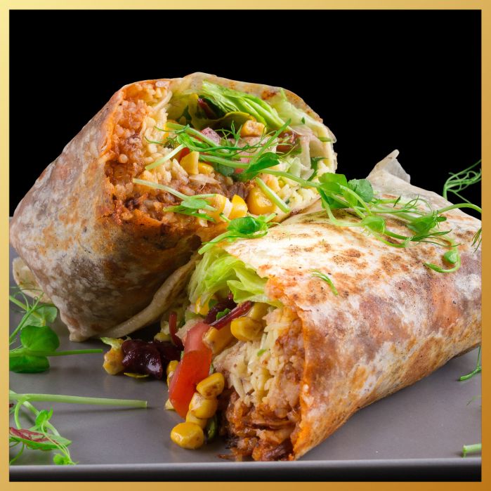 tortilla pszenna, ser, ryż, sos cezar, guacamole, pasta fasolowa, salsa,
